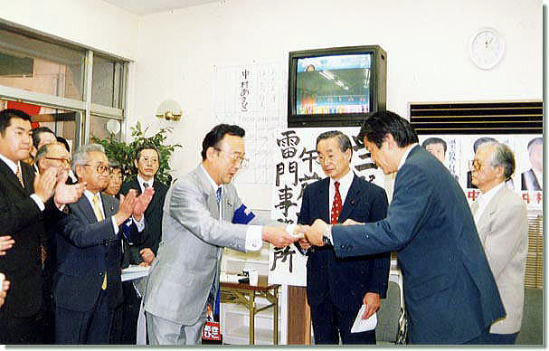 持田選挙管理委員長より当選証書を受け取る(H13/6/25 AM12:05)