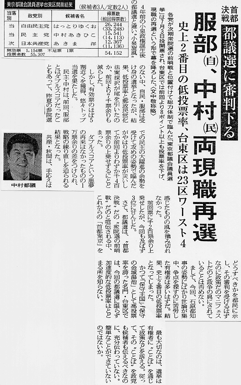 東京都議会議員選挙結果