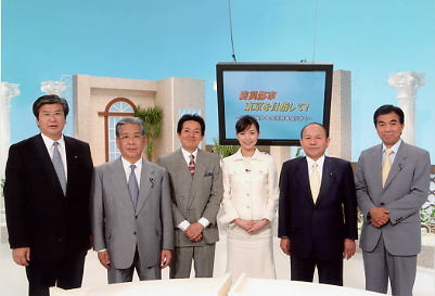 各派幹事長(左端が中村都議)と中央・司会のアナウンサー